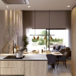 The interiors of the homes are designed to offer maximum comfort and modernity. The properties are available in 2 and 3-bedroom configurations, all with 2 bathrooms, ensuring ample space for families of different sizes. The interiors are equipped with air conditioning and underfloor heating, ensuring a comfortable environment year-round. Built-in wardrobes offer practical and elegant storage solutions. The kitchen comes fully equipped with modern appliances, and electric blinds add a touch of convenience. Additionally, the properties are furnished, facilitating immediate move-in. The ceramic flooring provides an elegant and easy-to-maintain finish.