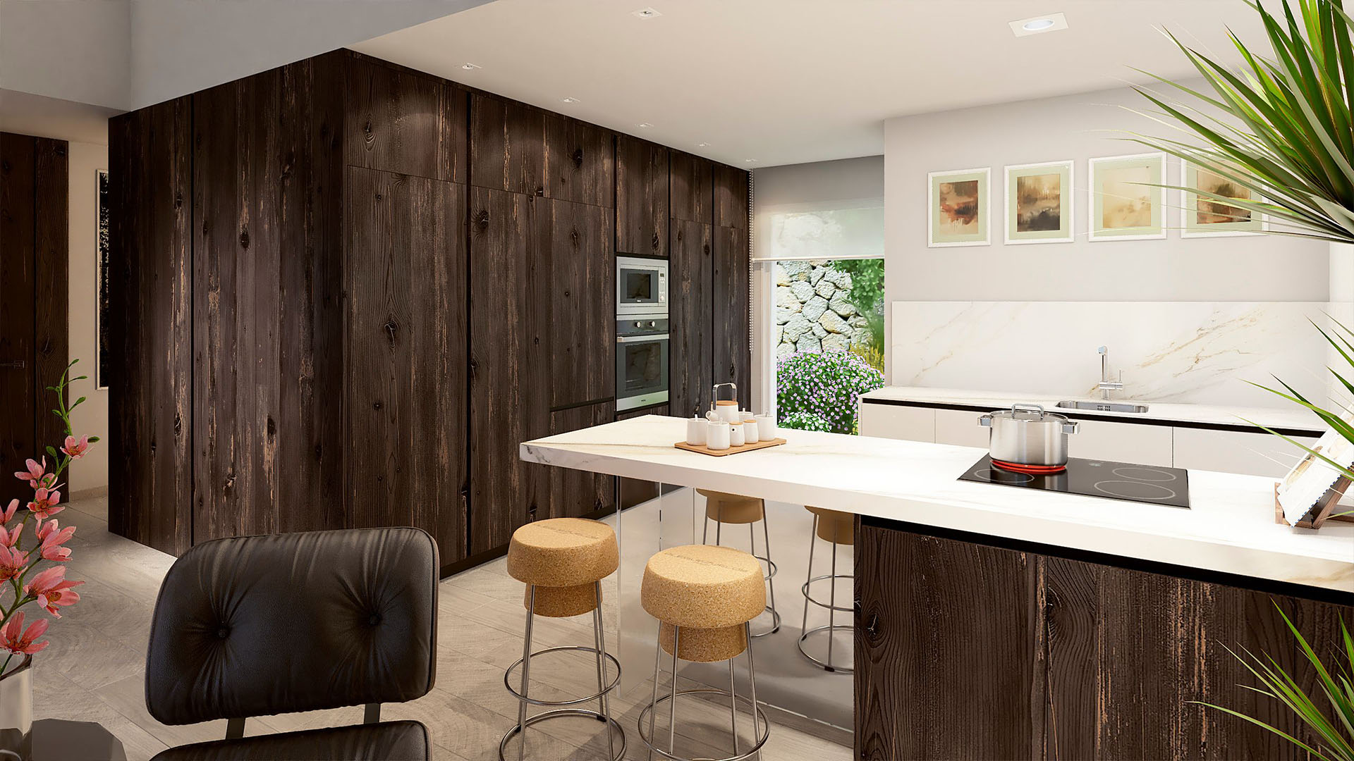 The properties feature carefully designed outdoor spaces to enjoy the Mediterranean climate. Each home has a private garden, perfect for outdoor relaxation. Additionally, the spacious terraces offer extra space for entertainment or simply enjoying the views. Residents can also enjoy a solarium, an ideal place for sunbathing in privacy. The presence of a pergola adds a touch of elegance and functionality, providing shade and style to the outdoor spaces. For those seeking a touch of luxury, some properties include a private pool, perfect for cooling off on hot days.