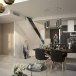 Inside, the townhouses are designed to offer maximum comfort and functionality. Each property has three bedrooms and two bathrooms, providing a spacious and well-distributed space for the whole family. The built-in wardrobes in the bedrooms offer practical and elegant storage solutions. The layout also includes a private garage, ensuring convenience and security for the residents. The interior design focuses on quality and efficiency, creating a welcoming and modern atmosphere.