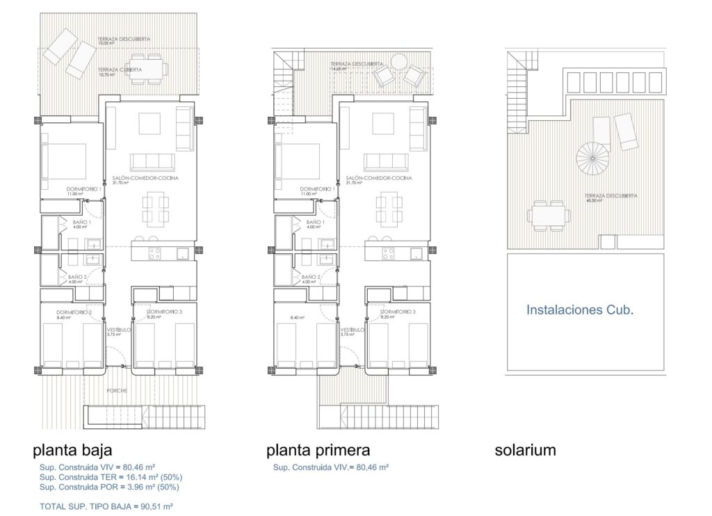 Located in the charming town of Bigastro, these bungalows offer a unique opportunity to enjoy a peaceful and well-connected environment. With a total of 14 properties available, residents can choose between upper and lower bungalows, all designed to maximize comfort and functionality. The proximity to the airport, just 50 km away, facilitates travel and easily connects with other regions. Each bungalow is equipped with built-in wardrobes, optimizing storage space and contributing to a tidy and modern environment.OUTDOOR AREASThe outdoor spaces of these bungalows in Bigastro are designed to offer an exceptional outdoor lifestyle. Each property features a private garden, ideal for enjoying the Mediterranean climate and creating a personal relaxation space. Additionally, the terraces provide a perfect place to enjoy the views and fresh air. For those seeking additional outdoor space, the solariums offer an ideal option for sunbathing or enjoying an al fresco dinner under the stars.INDOOR AREASInside, the bungalows are designed to offer a cozy and functional space. With three bedrooms and two bathrooms, each property is designed to meet the needs of families or couples seeking a spacious home. The built-in wardrobes in the bedrooms provide efficient storage, while the overall design of the homes promotes a natural flow between different areas, creating a harmonious and comfortable environment.COMMON AREASThe common areas of this residential complex in Bigastro are designed to foster a sense of community and offer leisure and relaxation spaces for all residents. The community gardens provide a green and serene environment, perfect for strolling or enjoying a moment of tranquility. Additionally, the community pool is an ideal meeting point to cool off during hot summer days and socialize with neighbors.