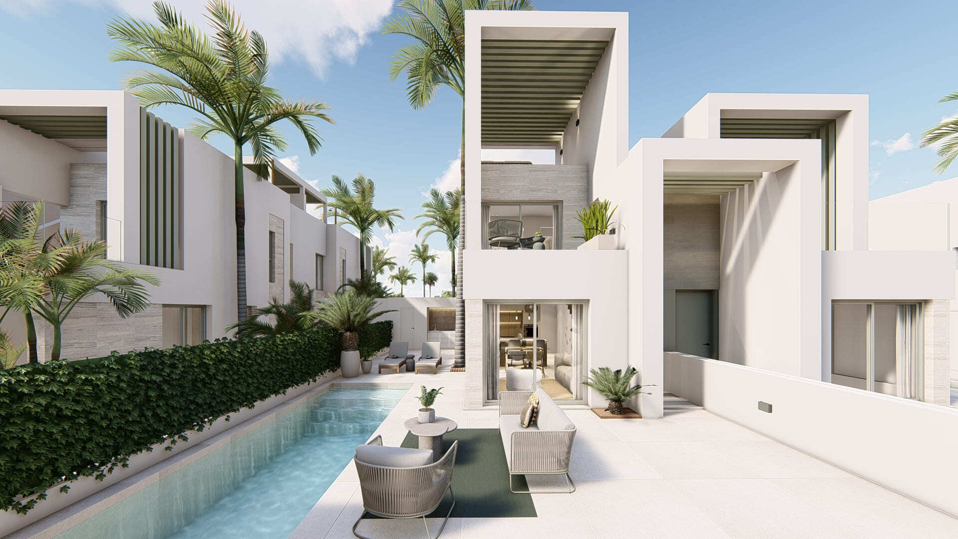 The townhouses in Ciudad Quesada stand out for their carefully designed outdoor spaces. Each home features a private terrace, ideal for enjoying the Mediterranean climate and hosting outdoor gatherings. Additionally, residents have the option to enjoy a solarium, a perfect space for relaxing and sunbathing in the privacy of their home. The inclusion of a private pool in each townhouse adds a touch of luxury and exclusivity, allowing owners to enjoy a refreshing swim at any time of the day. These outdoor elements not only enhance the visual appeal of the homes but also improve the residents' quality of life, offering multiple options for leisure and relaxation.