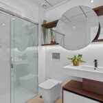 The interior of the bungalows is carefully designed to offer comfort and style. With two bedrooms and two bathrooms, each space is optimized for comfort. The porcelain stoneware floors add a modern touch and are easy to maintain. Electric shutters and built-in wardrobes are standard features that enhance the home's functionality. Additionally, the pre-installation of air conditioning ensures the indoor climate is always pleasant. The layout includes a garage, providing a secure space for the vehicle.