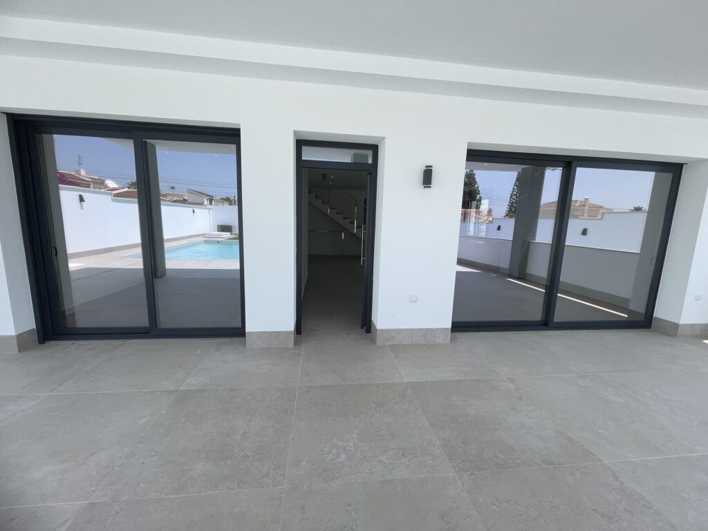 The exterior of this detached villa in Ciudad Quesada is a true oasis of tranquility. The property includes a private garden, ideal for enjoying the Mediterranean climate. Additionally, it features a private pool, perfect for relaxing and enjoying leisure moments with family or friends. The terrace offers additional outdoor space, ideal for al fresco dining or simply enjoying the views of the surroundings. The exterior design perfectly complements the modern style of the home, offering a balance between nature and comfort.