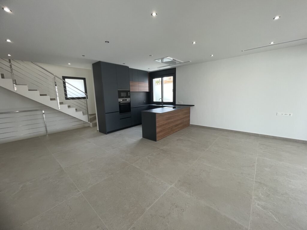 The interior of this detached villa is designed to offer maximum comfort and functionality. With three spacious bedrooms, each equipped with built-in wardrobes, the property ensures optimal storage space. The three bathrooms, designed in a contemporary style, offer comfort and privacy. Underfloor heating provides a pleasant temperature year-round, while the integrated kitchen appliances facilitate daily tasks. The layout includes a garage, ensuring a secure space for the vehicle and additional storage.
