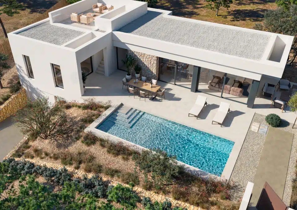 The exterior of this independent property in Dehesa de Campoamor is designed to fully enjoy the Mediterranean climate. It features a private garden that offers a green space for relaxation or for children to play outdoors. The terrace is perfect for outdoor dining or simply relaxing at the end of the day. Additionally, the property includes a solarium, an ideal space for sunbathing with complete privacy. The presence of a pergola adds a touch of elegance and functionality, providing shade and a cozy place to rest. The private pool is an additional luxury, allowing you to cool off on the hottest days without leaving home.