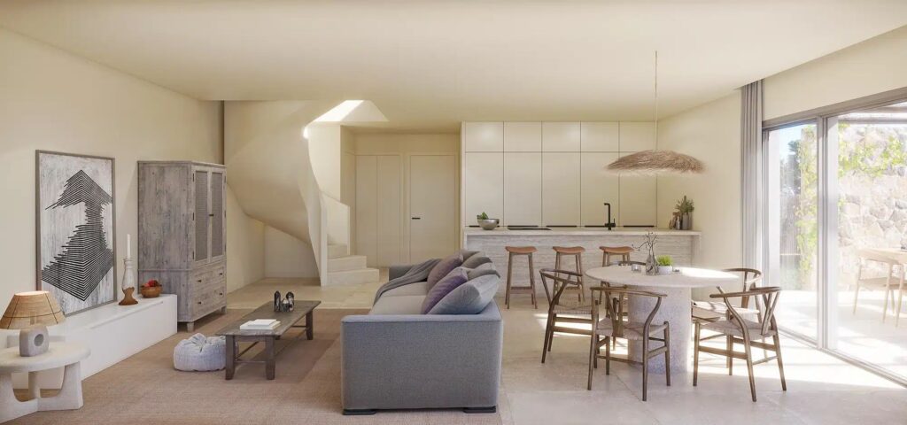 The interiors of the homes are designed with a focus on quality and comfort. Porcelain tile floors add a touch of elegance and durability. The homes are equipped with air conditioning, ensuring a pleasant environment year-round. Electric blinds and included appliances add a level of modern convenience. Built-in wardrobes offer efficient storage solutions, while the layout includes options with 3 bedrooms and 2 or 3 bathrooms, catering to the needs of different families. Additionally, each home features a private garage, ensuring convenience and security for vehicles.