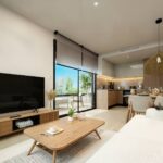 The interiors of the homes are designed to offer maximum comfort and functionality. Porcelain tile floors provide a modern touch and are easy to maintain. The inclusion of appliances and built-in wardrobes facilitates organization and space utilization. The video intercom adds an extra level of security and convenience. The pre-installation of air conditioning allows for efficient climate control. Layout options include 2 or 3 bedrooms and 2 bathrooms, adapting to different lifestyles and family needs. The presence of terraces and, in some cases, solariums, expands the possibilities of using both indoor and outdoor spaces.