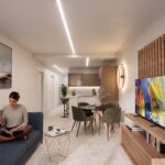 The interior design of the homes is intended to offer maximum comfort and functionality. The apartments, ground floors, and penthouses have two or three bedrooms, depending on the type, and all feature two full bathrooms. The homes are equipped with porcelain tile floors, which add a modern touch and are easy to maintain. Comfort is guaranteed with the installation of air conditioning and pre-installation for additional systems, ensuring a pleasant environment throughout the year. Electric shutters and included appliances facilitate daily life, while built-in wardrobes offer efficient and organized storage. Security is enhanced with a video intercom, providing peace of mind to residents.