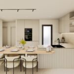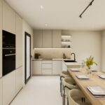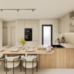 The interior of the bungalows is carefully designed to offer comfort and modernity. With 3 bedrooms and 2 bathrooms, each space is optimized for family living. The porcelain tile floors add a touch of elegance and are easy to maintain. Electric shutters and included appliances add a level of convenience and modernity. Built-in wardrobes offer practical storage solutions, while the pre-installation of air conditioning ensures the home is ready for climate comfort. These interior details are designed to provide a cozy and functional environment.