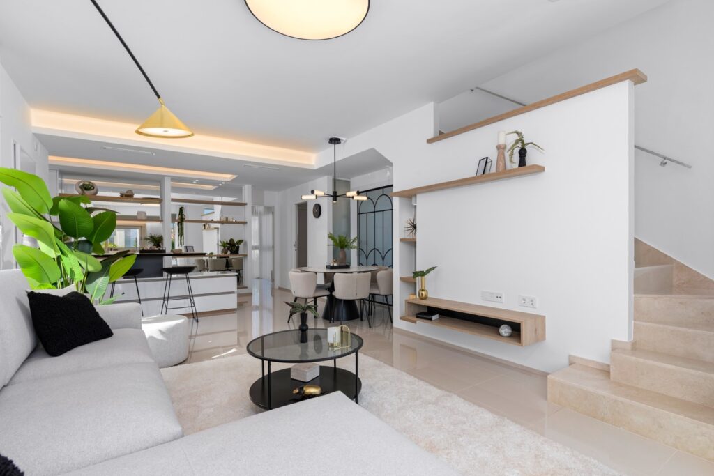 The exteriors of these properties have been carefully designed to maximize enjoyment of the Mediterranean climate. Each villa features a private garden, perfect for creating a personal oasis of tranquility. The presence of a private pool adds a touch of luxury, ideal for cooling off during hot summer days. Additionally, the terraces offer extra space for outdoor relaxation, al fresco dining, or simply enjoying the surroundings. The solarium is another highlight, providing an exclusive place for sunbathing with total privacy. The inclusion of an outdoor jacuzzi allows for moments of relaxation at any time of the year.