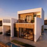 The interior of the villa is designed to offer maximum comfort and functionality. With three bedrooms and three bathrooms, the layout is perfect for families or hosting guests. The porcelain tile floors add a modern and elegant touch to the interior spaces. The property is equipped with electric shutters, making it easy to control light and privacy. Additionally, it features built-in wardrobes that optimize storage space. The pre-installation of air conditioning ensures that the home remains comfortable year-round. The kitchen is equipped with appliances, facilitating daily life and allowing for a move-in ready home.