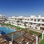The exteriors of this residential complex in Los Alcázares are designed to offer a relaxing and attractive living environment. Each property features a private garden, perfect for enjoying the Mediterranean climate and outdoor moments. Terraces, present in all types, provide additional space for leisure and relaxation, allowing enjoyment of the sea views and natural surroundings. Additionally, solariums available in some properties offer an exclusive space for sunbathing and relaxing in complete privacy. The location just 1 km from the sea and the golf course adds significant value, allowing residents to enjoy outdoor activities and the beauty of the coastal landscape. The architecture of the complex harmoniously integrates with the environment, creating a space that invites tranquility and enjoyment of nature.