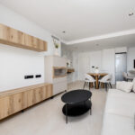 The exteriors of these homes are designed to offer an unparalleled outdoor lifestyle. Each property features a terrace, ideal for enjoying the views and the Mediterranean climate. Additionally, some types include a private solarium, perfect for relaxing under the sun. Ground-floor homes have private gardens, providing a personal green space to enjoy with family or friends. For those seeking an extra touch of luxury, some properties feature a private pool, offering a personal oasis to cool off during the warm summer days.