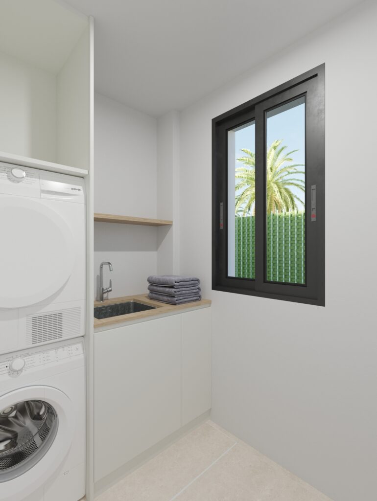 The interior of these detached homes is designed to maximize comfort and functionality. With three bedrooms and two bathrooms, each space is carefully laid out to offer comfort and privacy. Porcelain tile floors add a touch of elegance and durability. Electric shutters and built-in wardrobes are standard features that enhance the home's functionality. Additionally, the pre-installation of air conditioning ensures that the indoor climate is always suitable, adapting to the needs of each season.