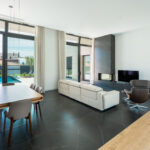 The interiors of the homes are designed with a focus on quality and functionality. Ceramic and porcelain tile floors add a touch of elegance and durability. The homes are equipped with air conditioning and electric shutters, ensuring comfort in all seasons. The kitchen comes with included appliances, facilitating daily life. Built-in wardrobes offer efficient storage, while the pre-installation of air conditioning allows for additional customization according to the owner's preferences.