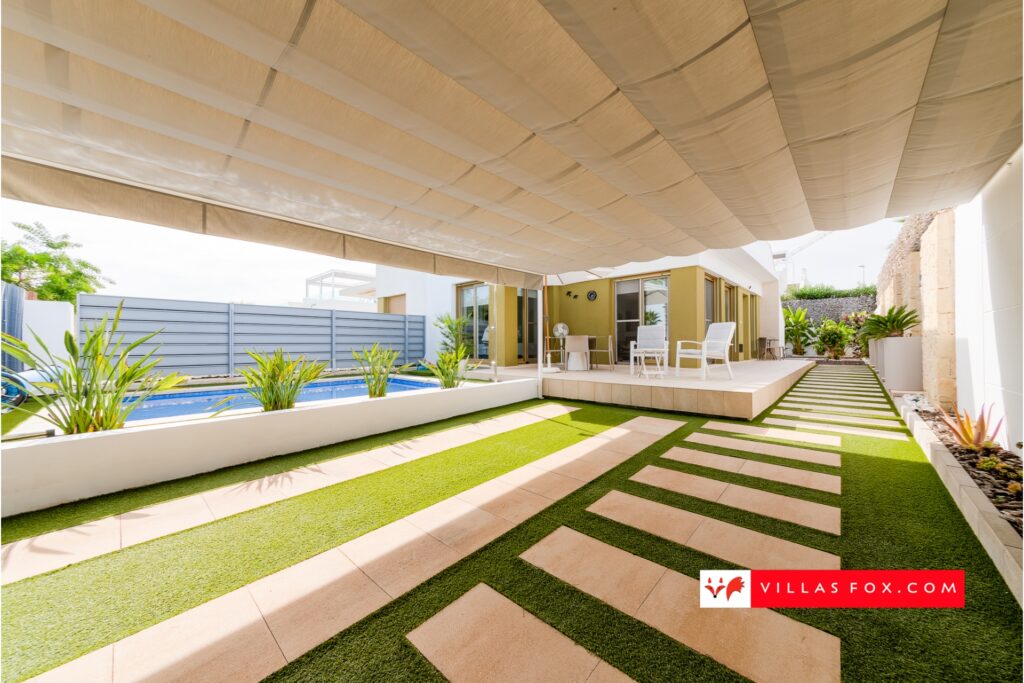 (Villas Fox REF: 1567) VISTABELLA GOLF LUXURY MODERN 3-BEDROOM VILLA WITH POOL, PARKING, SOLARIUM IN EXCELLENT CONDITION. Constructed floor size = 101.00 m2 Plot size = 263.00 m2 Year of construction = 2020 * 15 minutes drive to beach