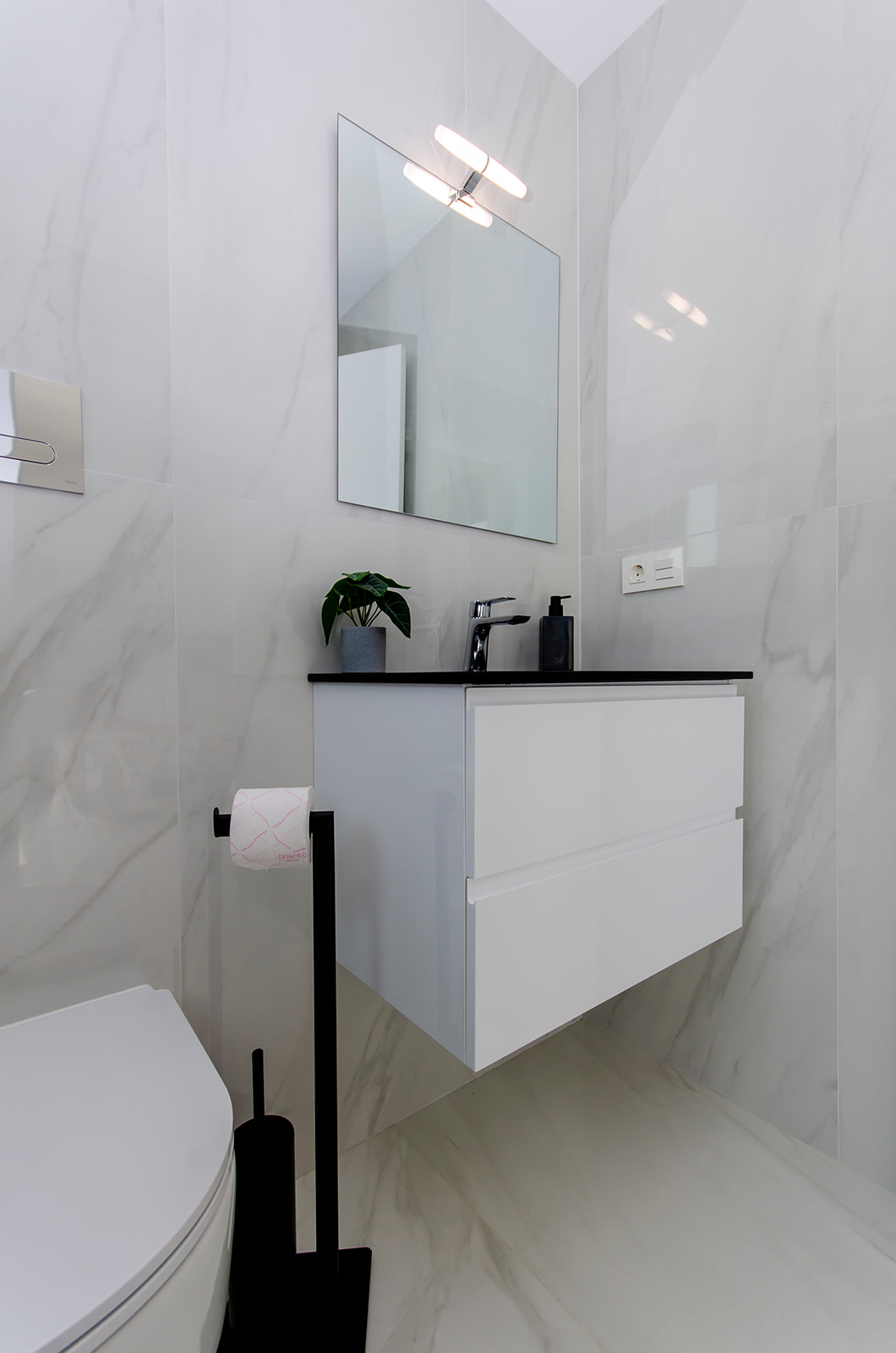 The interior of these homes in Orihuela is designed with a focus on comfort and functionality. Ceramic floors add a modern touch and are easy to maintain. The homes come fully furnished, making moving in easy and allowing enjoyment of the new home from day one. The kitchen is equipped with high-quality appliances, and the built-in wardrobes in the bedrooms offer ample storage space. The air conditioning system, along with additional pre-installation, ensures a pleasant environment throughout the year. Electric blinds and the video intercom add an extra level of comfort and security.