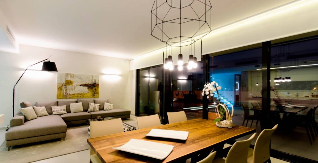 The interior of the villas is designed to offer a modern and welcoming space. With 4 bedrooms and 4 bathrooms, each villa is equipped to meet the needs of families of various sizes. Built-in wardrobes provide efficient storage, while the kitchen equipped with modern appliances facilitates daily life. The air conditioning system ensures a comfortable environment throughout the year. The interior spaces are designed to maximize natural light and offer a warm and inviting atmosphere.