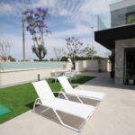 The exteriors of these detached homes are designed to fully enjoy the Mediterranean climate. Each property features a private garden, perfect for creating a personal oasis of tranquility. The terrace offers additional space for outdoor relaxation, while the solarium is ideal for sunbathing in complete privacy. Additionally, each home has a private pool, providing a refreshing spot to enjoy during the warm summer days. The community also offers landscaped areas, contributing to a green and pleasant environment.