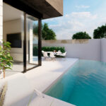 The exteriors of these bungalows are designed to make the most of the Mediterranean climate. Each property features a private garden, perfect for enjoying outdoor moments in an intimate and natural setting. The presence of a terrace offers additional leisure space, ideal for outdoor dining or simply relaxing while enjoying the sea views. Additionally, the bungalows include a solarium, providing extra space for sunbathing or enjoying panoramic views. The inclusion of a private pool in each bungalow adds a touch of luxury, allowing for refreshing dips on the hottest days without leaving home.