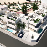 The exteriors of these homes are designed to maximize enjoyment of the Mediterranean climate. Each bungalow features a private terrace, perfect for outdoor relaxation or al fresco dining. Additionally, the presence of a solarium offers extra space for sunbathing or simply enjoying the surrounding views. For those who value privacy, some units have a private pool, turning the home into a personal oasis. The inclusion of a jacuzzi adds a touch of luxury and wellness, allowing for moments of relaxation in the comfort of home.