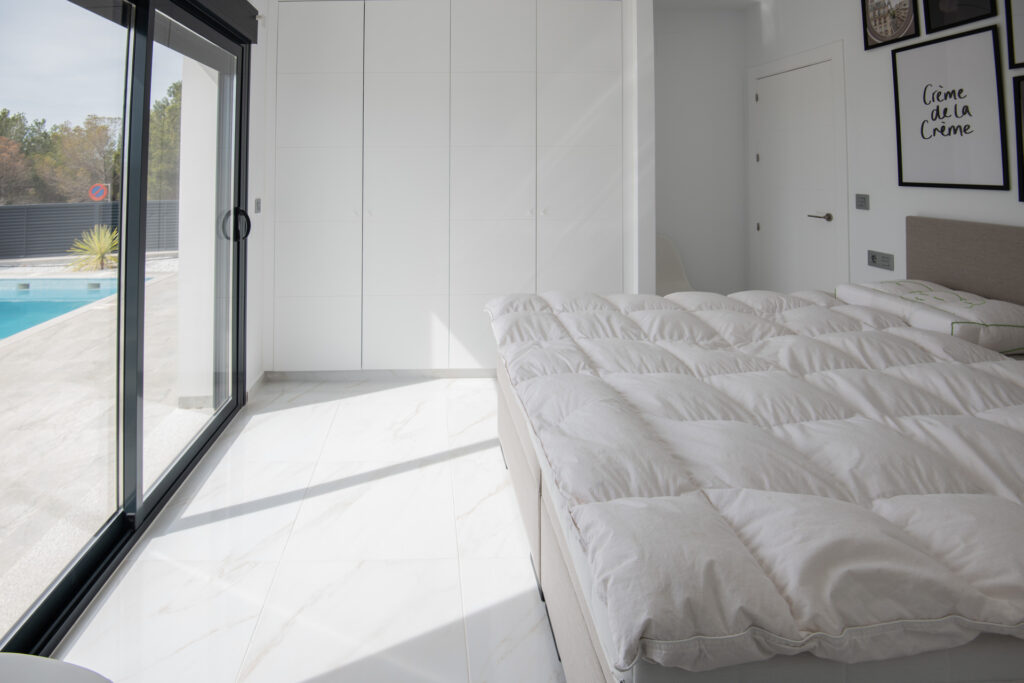 The interiors of these detached homes are carefully designed to offer comfort and functionality. The properties are available in 2 or 3-bedroom configurations, each with 2 bathrooms, providing flexibility for different family needs. The interiors are equipped with air conditioning, ensuring a pleasant environment year-round. Built-in wardrobes offer efficient storage, while included appliances and furniture facilitate immediate move-in. Ceramic flooring adds a modern touch and is easy to maintain. Additionally, the video intercom adds an extra level of security and convenience.