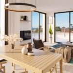 The exteriors of this residential in Playa Flamenca are designed to complement the Mediterranean lifestyle. The homes feature terraces that allow enjoyment of the sunny weather and views of the natural surroundings. Solariums, available in some types, offer additional space for relaxation and outdoor entertainment. The presence of communal gardens adds a touch of greenery and freshness, creating a tranquil and welcoming environment for all residents.