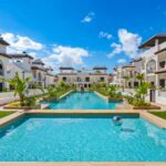The interior of the bungalows is designed with attention to detail, incorporating modern and practical features. Porcelain stoneware floors provide an elegant and durable finish, while electric blinds and integrated appliances make daily life easier. Built-in wardrobes offer efficient storage, and the jacuzzi adds a touch of luxury and relaxation. With a layout that includes two bedrooms and two bathrooms, each space is optimized for comfort and privacy.