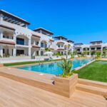 The exteriors of these homes are designed to offer a space for relaxation and outdoor enjoyment. Each bungalow features a private garden, perfect for enjoying the Mediterranean climate. Additionally, the terraces and solariums provide extra leisure space, allowing residents to enjoy unobstructed views and moments of tranquility. The presence of pergolas adds a touch of elegance and functionality, offering shade and style to the outdoor spaces.