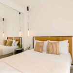 The exteriors of these homes are designed to offer a space for relaxation and outdoor enjoyment. Each bungalow features a private garden, perfect for enjoying the Mediterranean climate. Additionally, the terraces and solariums provide extra leisure space, allowing residents to enjoy unobstructed views and moments of tranquility. The presence of pergolas adds a touch of elegance and functionality, offering shade and style to the outdoor spaces.