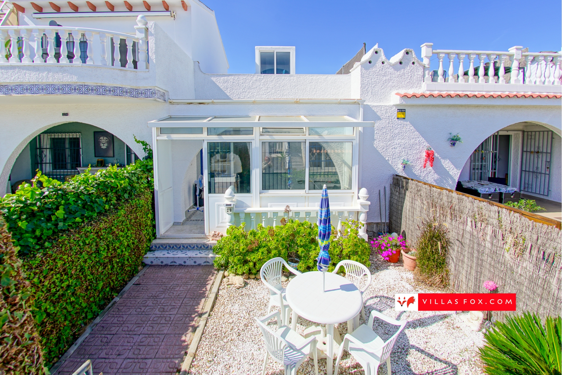 (Villas Fox REF: 1490) 2-bedroom townhouse with gardens and solarium, blue lagoon, san miguel de salinas. Constructed floor size = 49.50 m2 Plot size = 109.00 m2 Year of construction = 1987 * 10 minutes drive to the beach
