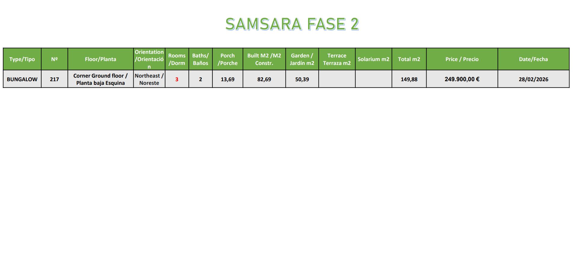 Residencial Samsara is an exclusive residential complex that offers high-quality homes with excellent thermal and acoustic insulation, first-class finishes and complete equipment. The facilities include two swimming pools, large garden areas, and well-designed common areas, guaranteeing a comfortable and safe environment. Each home has modern furnished kitchens, porcelain floors and efficient plumbing and air conditioning systems.Starting price is at 179,900 euros. Phase 1 will be ready by september 2025 whilst phase 2 is planned to be acheived by february 2026.