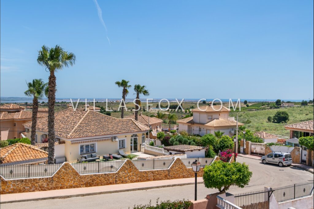 A fabulous villa in the exclusive Torrestrella area of Las Comunicaciones, San Miguel de Salinas available exclusively from Villas Fox. The property is very spacious, both indoors and outdoors, and with superb views from the sun terrace that leads off from the master bedroom.