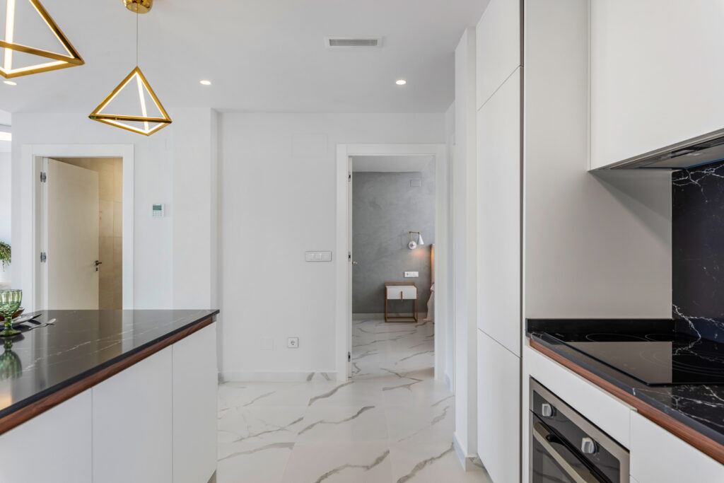 The outdoor areas of these properties are designed to maximize enjoyment of the Mediterranean climate. Each bungalow features a private garden, ideal for creating a personal green space or enjoying outdoor activities. The terraces offer a perfect place to relax and enjoy the surrounding views. Additionally, residents have the option to enjoy a solarium, an additional space that allows for maximum sun exposure throughout the year. For those looking to cool off, some bungalows include a private pool, providing a personal oasis of tranquility and fun.