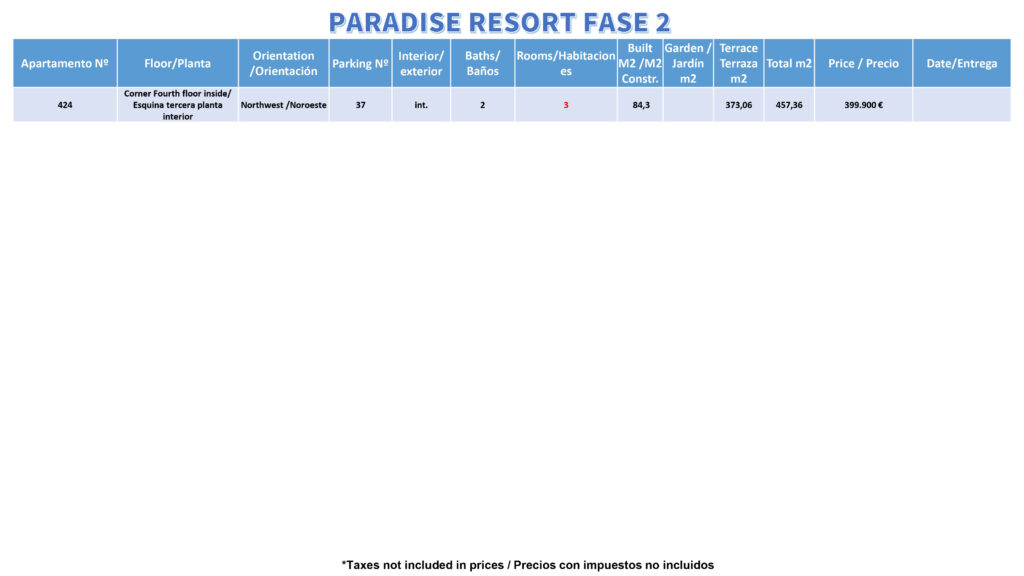 (Villas Fox REF: 1587) LAST REMAINING! PARADISE RESORT NUMBER 424, 3-BEDROOM, 2-BATHROOM, 373 M2 TERRACE!. Constructed floor size = 67.70 m2 Plot size = 457.00 m2 Year of construction = 2025 * 15 minutes drive to beach