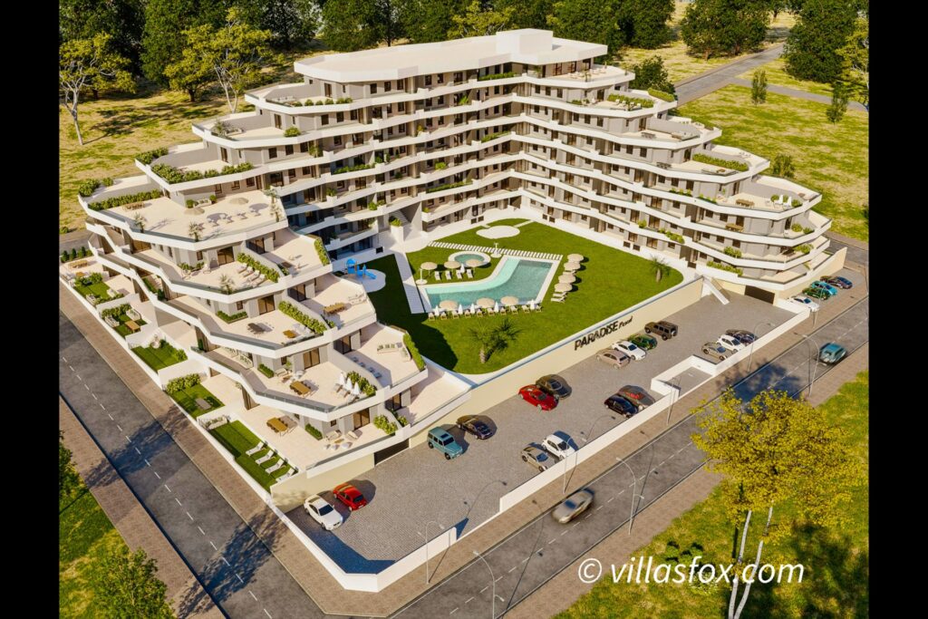 This is probably the most exciting development on the southern Costa Blanca right now!An innovative design of 2 and 3-bedroom apartments with large terraces and private parking (either indoor or outdoor), located in San Miguel de Salinas town centre!The development will boast 165 apartments, of which 30 will be penthouses! Walking distance to shops, bars, restaurants and the church square of San Miguel de Salinas.San Miguel is only a short 10-15 minute drive to beaches, golf and shopping centres.The communal swimming pool will measure an impressive 199 m2 ! Other communal facilities will include a children“s playground and an adult outdoor exercise gym!The first phases to be released will comprise 85 units, on 8 floors. 20 of those units will be 3-bedroom apartments, whilst 65 will be 2-bedroom apartments.Storage rooms available. Prices STARTING at 149,900 euros for 2-bedroom apartments and 209,900 euros for 3-bedroom apartments. Delivery expected early 2025. Contact Villas Fox today for a full price list with plans!