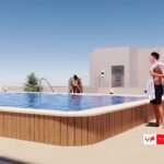 On the rooftop, residents can enjoy an exclusive 350 m² leisure area featuring a 70 m² swimming pool with a childrens splash pool, pergolas, parasols and sun loungers everything you need to unwind under the Spanish sun while taking in the panoramic views. This area is easily accessible via one of the three lifts and is equipped with the necessary sanitary facilities.