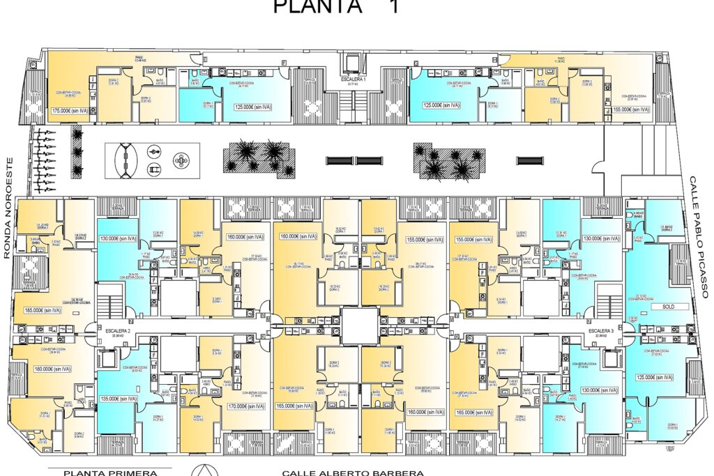 On the rooftop, residents can enjoy an exclusive 350 m² leisure area featuring a 70 m² swimming pool with a childrens splash pool, pergolas, parasols and sun loungers everything you need to unwind under the Spanish sun while taking in the panoramic views. This area is easily accessible via one of the three lifts and is equipped with the necessary sanitary facilities.