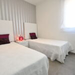 The interiors of the homes are designed to offer comfort and modernity. The porcelain stoneware floors add a touch of elegance and are easy to maintain. The homes are equipped with built-in wardrobes, providing ample storage space. The pre-installation of air conditioning ensures that the indoor climate is always pleasant, while the video intercom adds an extra level of security and convenience. The layout of the homes, with two bedrooms and two bathrooms, is designed to offer a functional and cozy space, adapting to the needs of its residents.