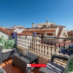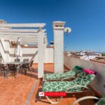 An external stairway leads to a large private solarium, with views of the Mediterranean in the distance.