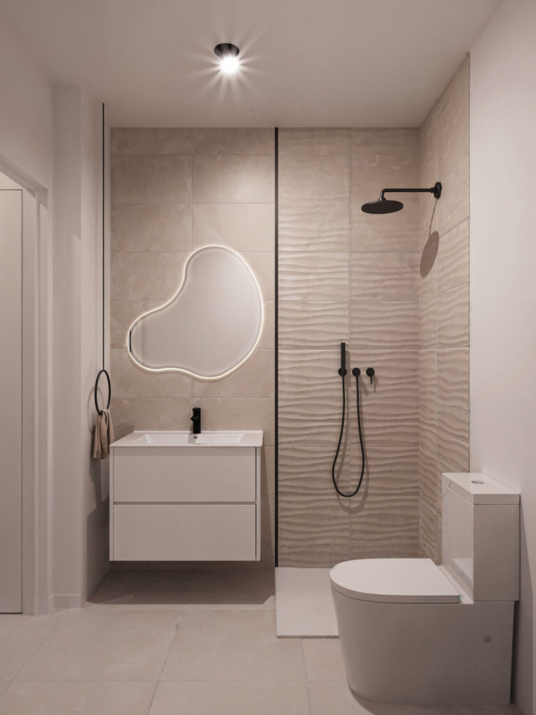 The exteriors of these bungalows are designed to make the most of the Mediterranean climate. Each home features a private garden, ideal for creating a personal green space or enjoying outdoor moments. Additionally, the terraces offer a perfect place to relax or share with friends and family. For those seeking panoramic views, the solarium is an additional space that allows for enjoying the surroundings with complete privacy.