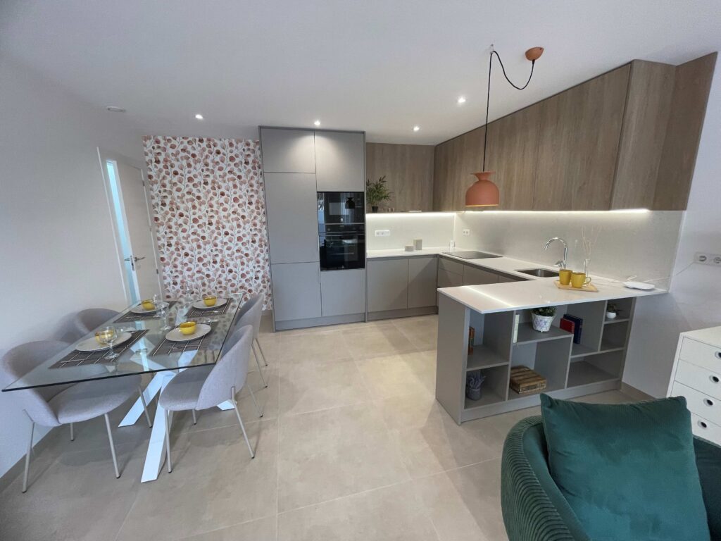 The interior of these townhouses is designed to offer maximum comfort. With three bedrooms and three bathrooms, each property is equipped to meet the needs of families or groups. Porcelain tile floors add a touch of elegance and are easy to maintain. The kitchen is equipped with modern appliances, facilitating daily life. Air conditioning ensures a pleasant environment year-round, while built-in wardrobes offer efficient storage space. Additionally, the video intercom adds an extra level of security and convenience.