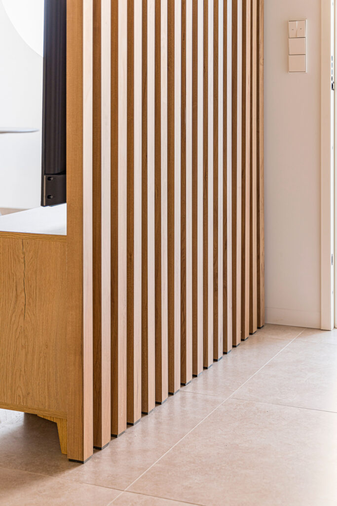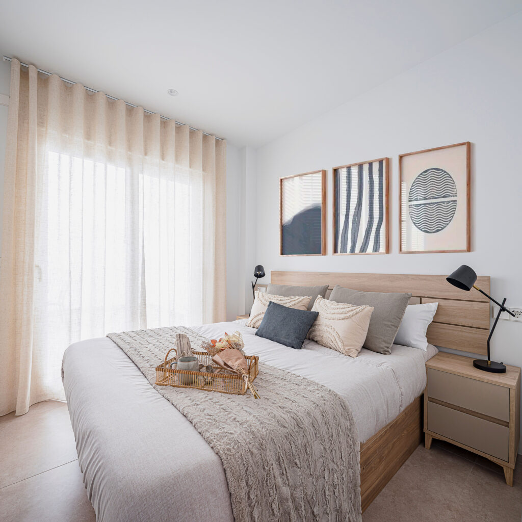 The exteriors of these properties are designed to enjoy the Mediterranean climate. Each bungalow has a private garden, perfect for moments of outdoor relaxation. Additionally, the terraces offer extra space to enjoy sea views and the natural surroundings. The inclusion of a solarium provides an ideal spot for sunbathing in privacy, while pergolas add a touch of elegance and shade, creating a welcoming environment for outdoor gatherings.