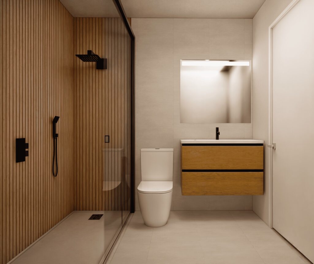 The interiors of the homes are designed to offer maximum comfort. Porcelain tile floors provide a modern and easy-to-maintain finish. The homes are equipped with appliances, making daily life easier from day one. Built-in wardrobes optimize storage space, while the pre-installation of air conditioning ensures the home stays cool during warmer months. The layout includes a garage, providing a secure space for the vehicle.