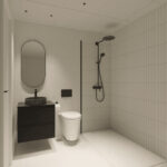 The interior of the bungalows is carefully designed to offer comfort and style. With porcelain stoneware floors, the homes feature two bedrooms and two bathrooms, providing adequate space for families or couples. Built-in wardrobes optimize storage, while the inclusion of modern appliances ensures each home is ready to be lived in from day one. The intelligent layout of the interior spaces guarantees functionality and comfort in every corner.
