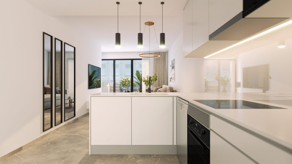 Inside, the homes are equipped with features that ensure maximum comfort. The air conditioning installed in each property guarantees a pleasant environment throughout the year, while the built-in wardrobes offer efficient and stylish storage solutions. The layout options include 1 or 2 bedrooms and 1 or 2 bathrooms, allowing for the selection of the configuration that best suits personal needs. Private terraces and, in some cases, solariums add a special touch, providing additional spaces for leisure and relaxation.