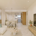The interior of the homes is designed to offer maximum comfort and functionality. The apartments and ground floors feature porcelain floors, which add a touch of elegance and are easy to maintain. The video intercom system provides security and convenience, while the electric shutters allow for efficient control of light and privacy. High-quality appliances are included, facilitating the daily life of residents. The air conditioning ensures a cool environment during the warmer months, and the built-in wardrobes offer optimal storage space. The layout of the homes, with options of two or three bedrooms and two bathrooms, is designed to adapt to different needs and lifestyles, providing a cozy and functional space for the whole family.