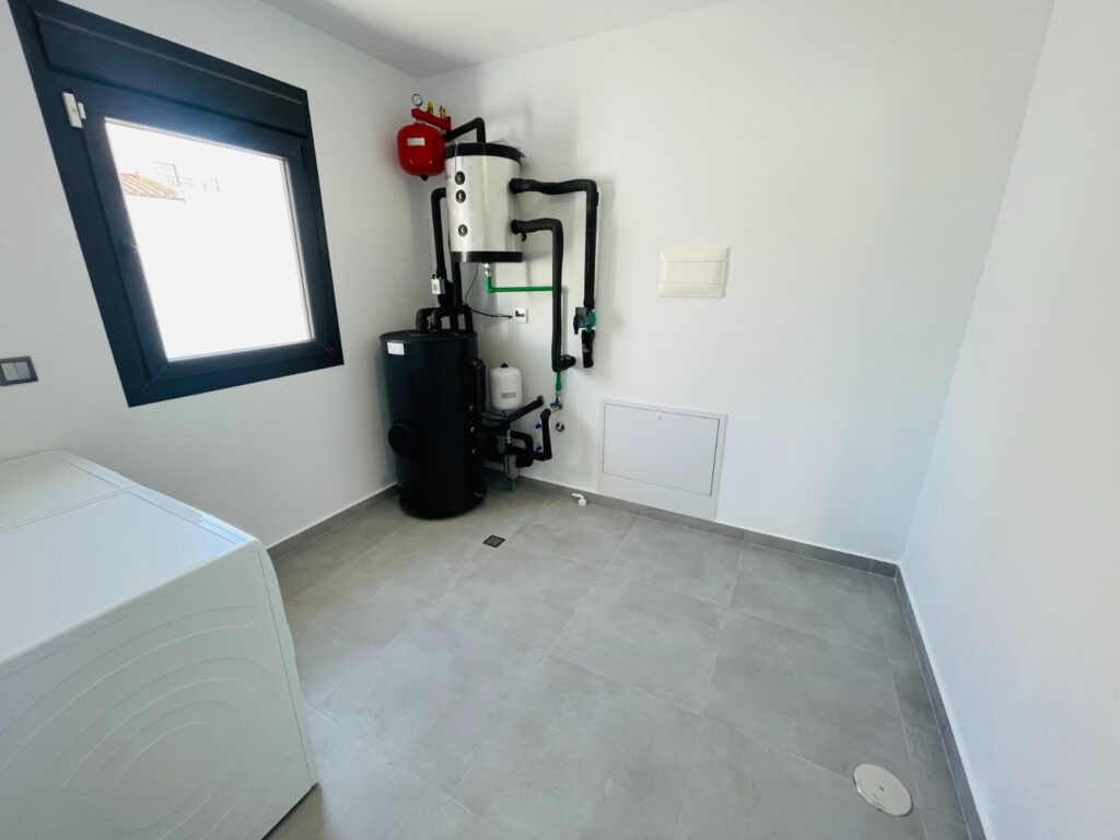 The interior of these detached homes in Torrevieja is designed to offer maximum comfort and functionality. With a layout that includes five bedrooms, these properties are ideal for large families or those who desire additional space for guests. The bathrooms, ranging from three to four depending on the type, are equipped with underfloor heating, ensuring a warm and welcoming environment all year round. The kitchen and common areas feature porcelain tile floors, a material that combines aesthetics and durability. The integrated air conditioning ensures a pleasant temperature in any season. Additionally, the built-in wardrobes offer practical and elegant storage solutions. The presence of a garage provides convenience and security for vehicle parking.