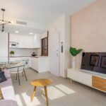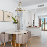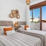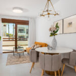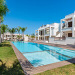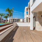 The outdoor spaces of these properties are designed to maximize enjoyment of the Mediterranean climate. Each home features a private terrace, ideal for relaxing outdoors. Additionally, the bungalows have a solarium, perfect for sunbathing in the privacy of your home. The presence of a pergola adds a touch of elegance and functionality, providing shade and style. The common areas include well-maintained gardens, offering a green and tranquil environment for walking or resting.