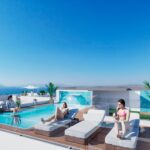 The interior design of the properties in this Torrevieja residential complex is aimed at offering maximum comfort and functionality. The apartments and penthouses are available in 2 and 3-bedroom configurations, with 2 or 3 bathrooms, catering to the needs of different types of families. Ceramic floors add a modern touch and are easy to maintain. The homes are equipped with video intercom and electric shutters, ensuring security and convenience. The pre-installation of air conditioning ensures a pleasant environment throughout the year. Additionally, the kitchens are fully equipped with appliances, and the built-in wardrobes provide efficient storage space.